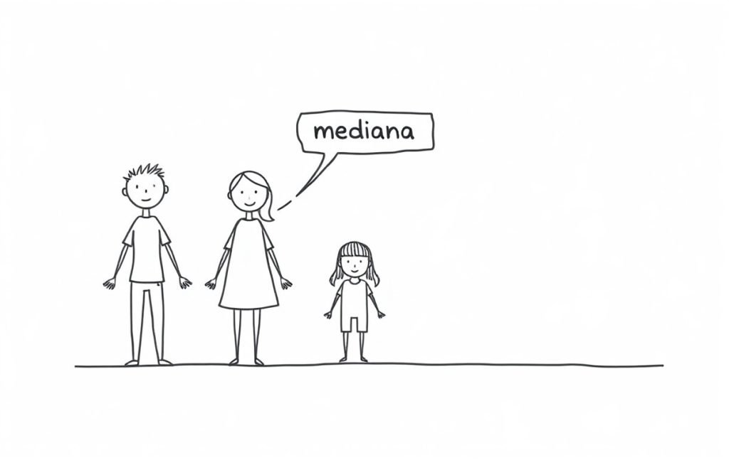 La mediana es el valor que se encuentra justo en el medio de un conjunto de datos ordenados. Divide el conjunto en dos partes iguales: la mitad de los datos son menores o iguales a la mediana y la otra mitad son mayores o iguales.